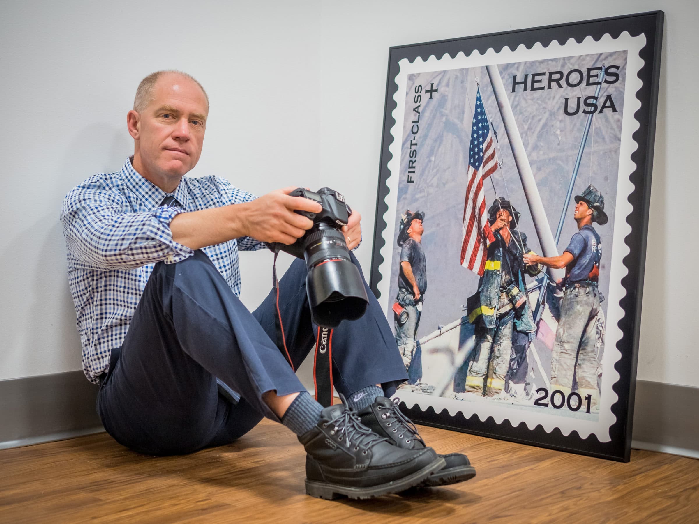 The first week of classes this semester, Professor Thomas Franklin played a video for his Multimedia News Production and Media Tech Toolkit classes that depicted the undertaking of covering the events of 9/11 as a news event and the making of the famous photograph that captured the American spirit emerging on a dark day in history. This image, showing 3 firemen raising the American flag at ground zero, just happens to be one of Franklin’s many ground breaking creative works that have proven images not only tell our stories, but have the power to improve and shape our lives. Franklin is now helping to shape the lives of students at Montclair State University as one of the newest professors of the School of Communication and Media and it is this underscored lesson he hopes to instill.